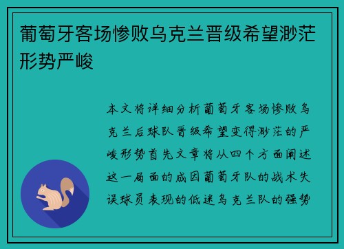 本文将详细分析葡萄牙客场惨败乌克兰后,球...